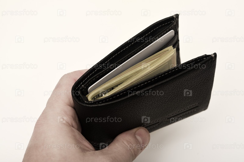 Черный кошелек с долларами на белом фоне. Кошелек с деньгами