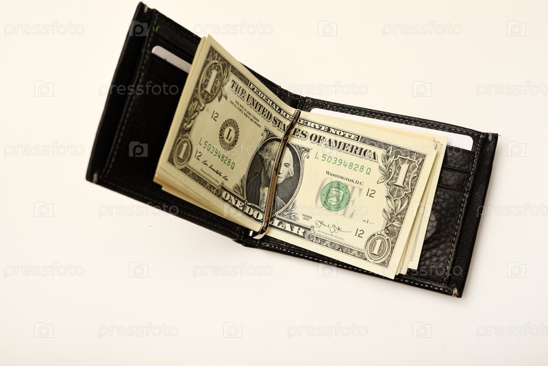 Черный кошелек с долларами на белом фоне. Кошелек с деньгами
