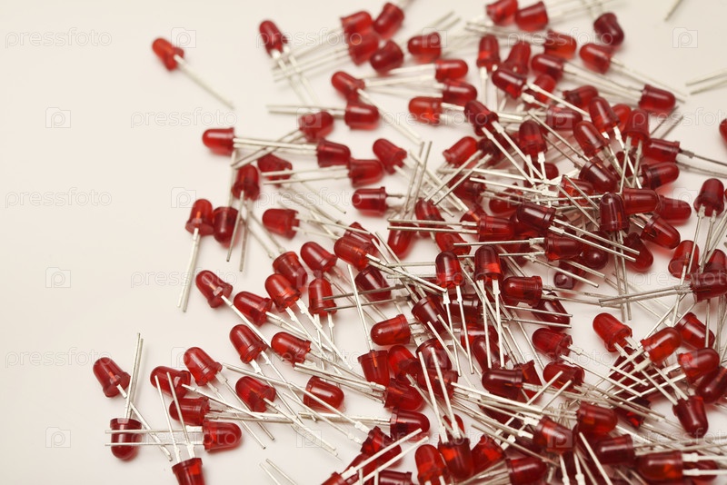 Красные светодиодные лампочки на белом фоне. Радиоэлемент — светодиодная лампа
