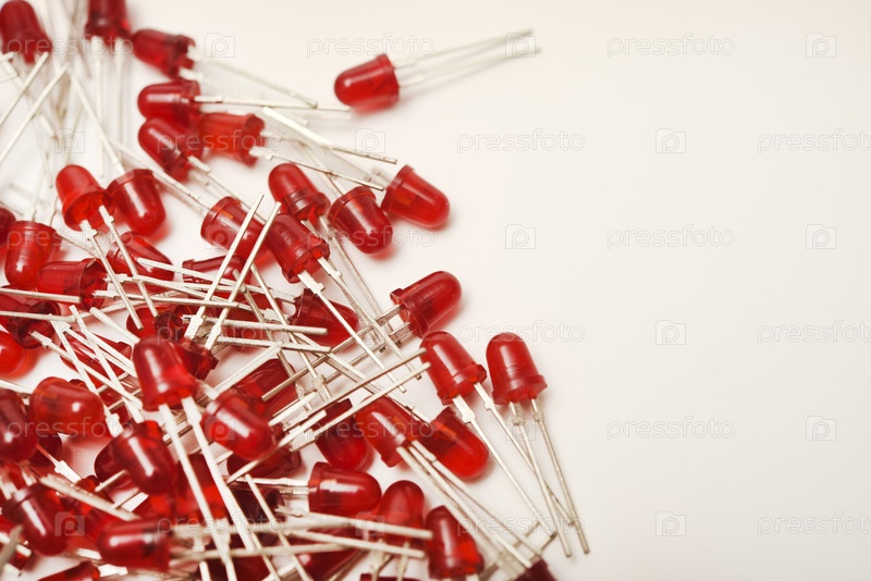 Красные светодиодные лампочки на белом фоне. Радиоэлемент — светодиодная лампа