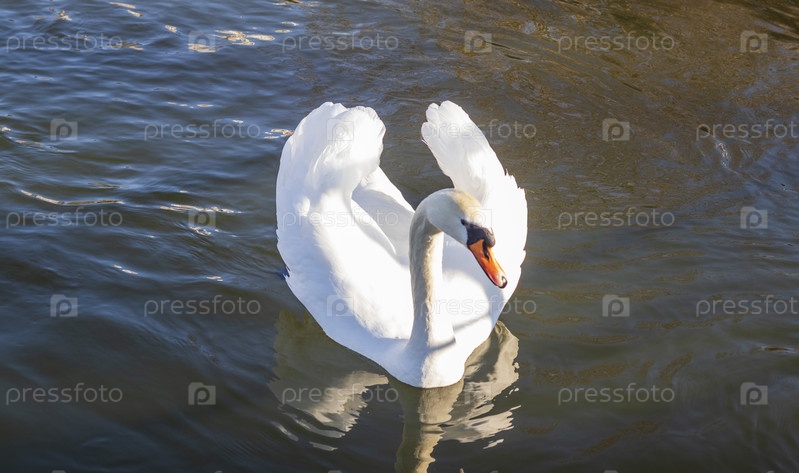 Лебедь на замерзшем пруду. Природа