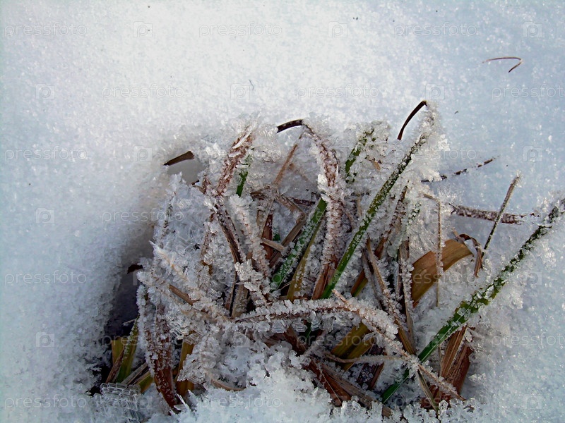 Изморозь, растения в инее в мороз после оттепели