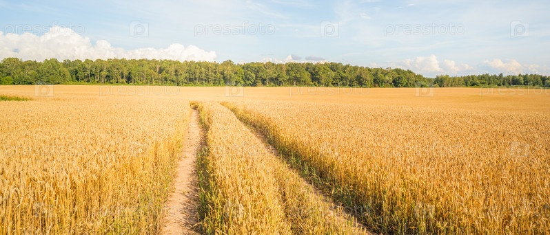 Поле желтой спелой пшеницы в солнечный день