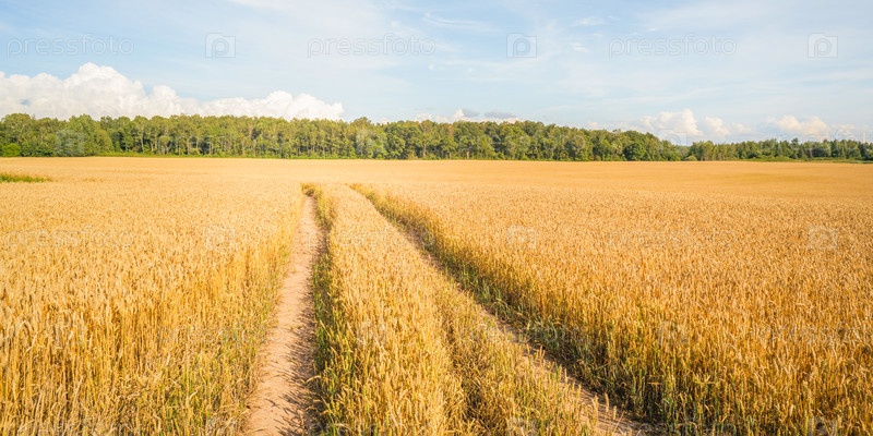Поле желтой спелой пшеницы в солнечный день