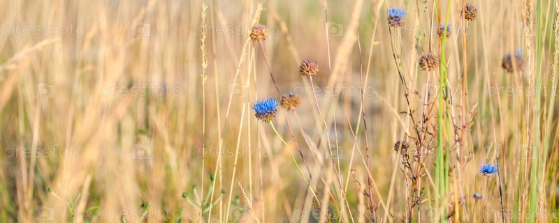 Синий цветок среди желтой травы на лугу