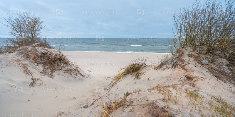 Лес на побережье Балтийского моря в пасмурный день осенью