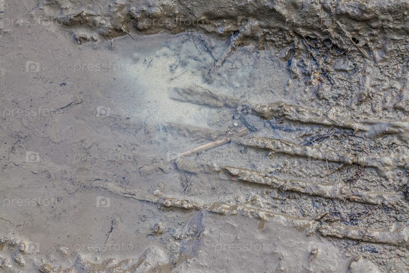 Жирная мокрая грязь со следами колес, текстурный фон