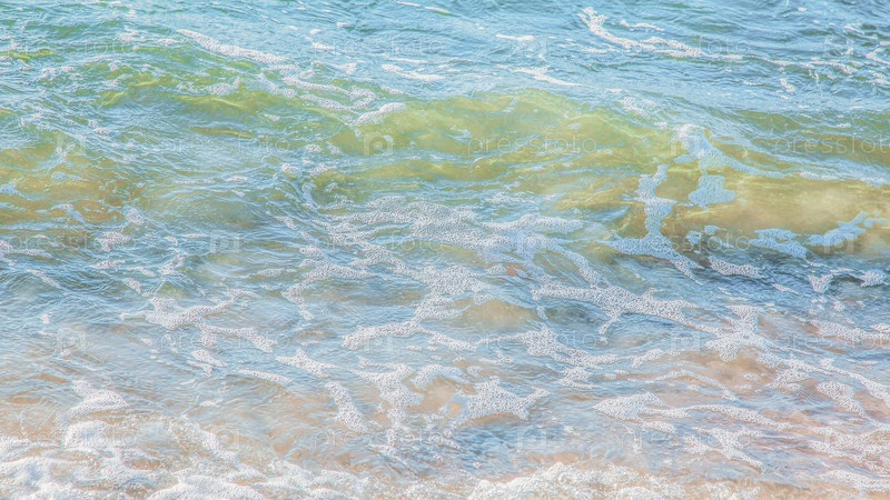 Кристально чистая лазурная вода с морской пеной, морской пейзаж на заднем плане