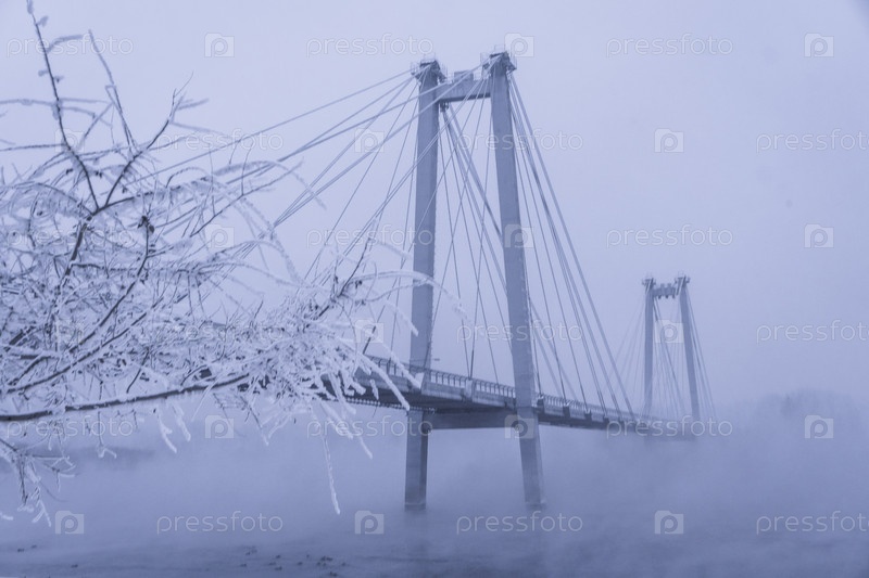 Раннее зимнее морозное утро над Енисеем в центре Красноярска