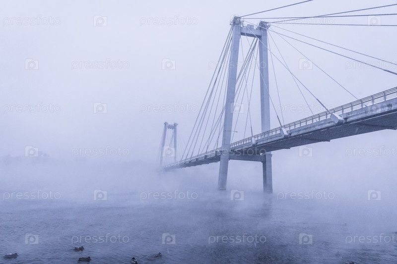Раннее зимнее морозное утро над Енисеем в центре Красноярска