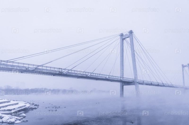 Раннее зимнее морозное утро над Енисеем в центре Красноярска