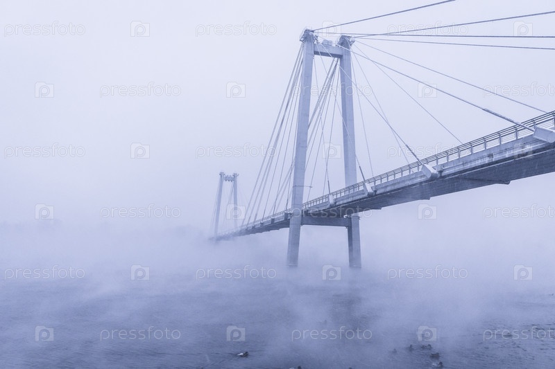 Раннее зимнее морозное утро над Енисеем в центре Красноярска