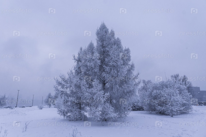 Раннее зимнее морозное утро над Енисеем в центре Красноярска