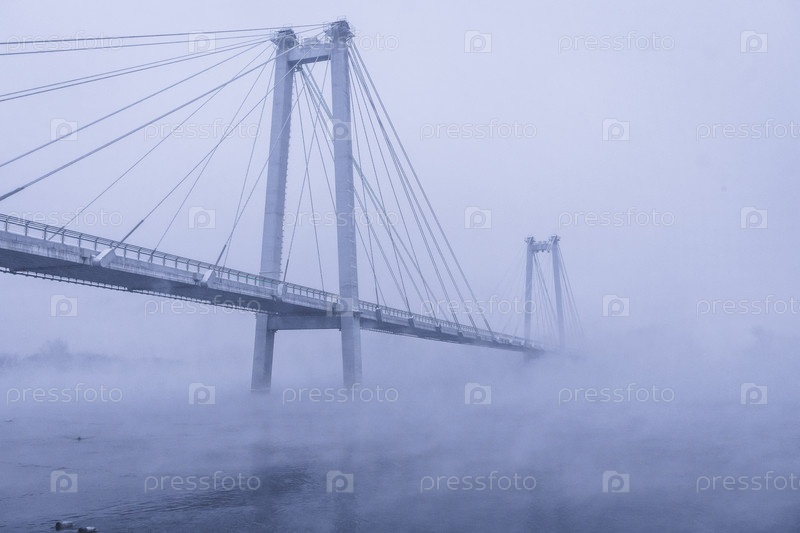 Раннее зимнее морозное утро над Енисеем в центре Красноярска