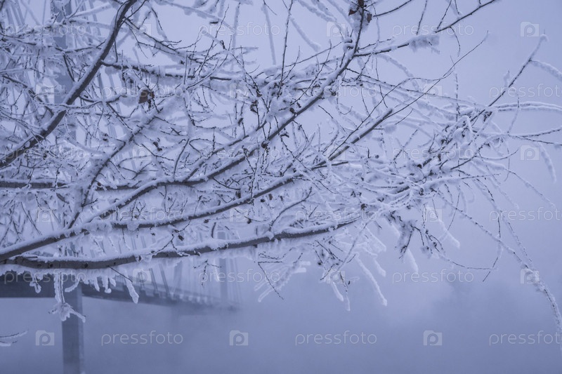 Раннее зимнее морозное утро над Енисеем в центре Красноярска