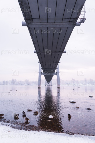 Раннее зимнее морозное утро над Енисеем в центре Красноярска