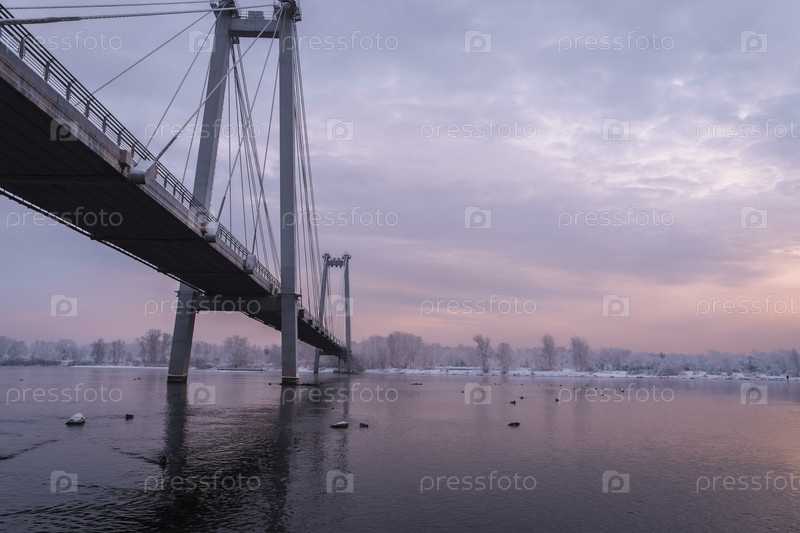Раннее зимнее морозное утро над Енисеем в центре Красноярска