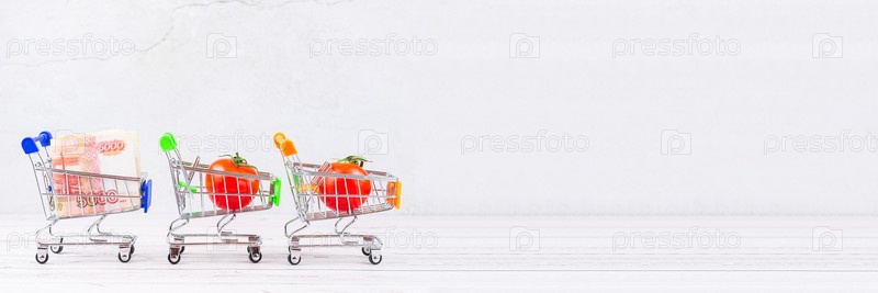 Деньги и помидоры в корзине