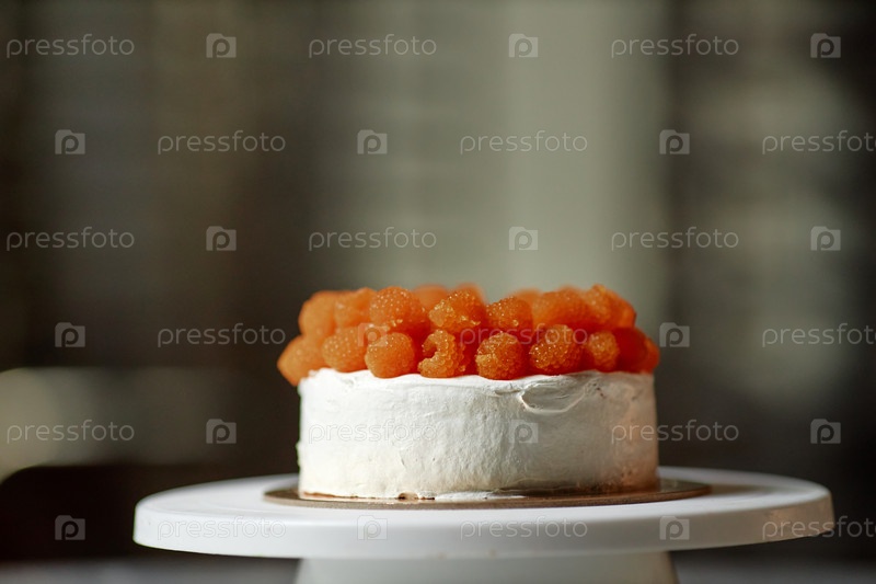 Домашний торт со льдом с масляной смесью, украшенный малинами на верхней крыше