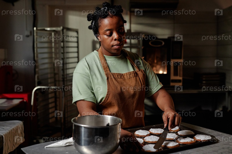 Женская кондитерка Черные ледяные роллы, делающие сладкие выпечки на пекарской кухне