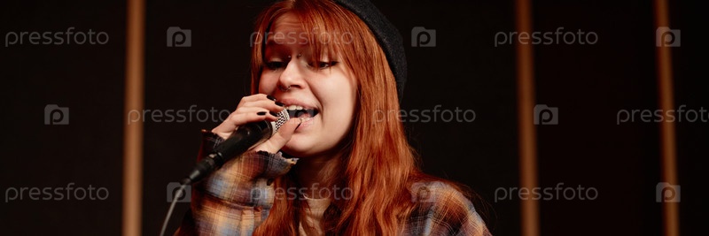 Header Image of Teenage Girl Singing Song into Mic Выступая в студии