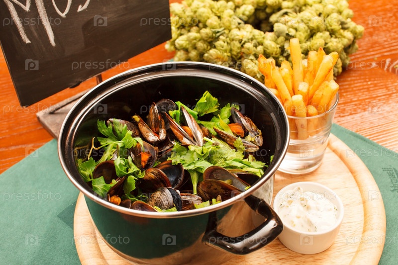 Мидии с картофелем фри