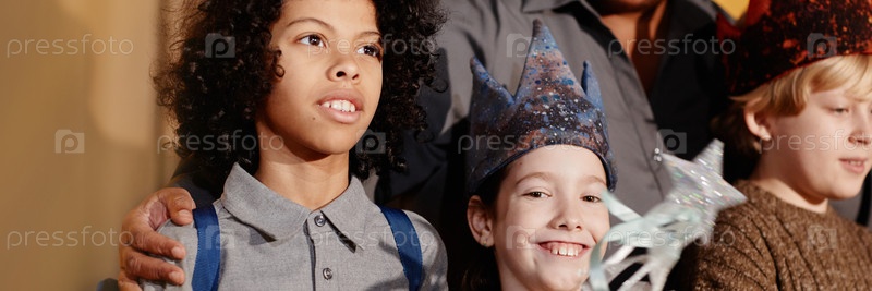 Улыбающиеся дети празднуют торжественное мероприятие в помещении
