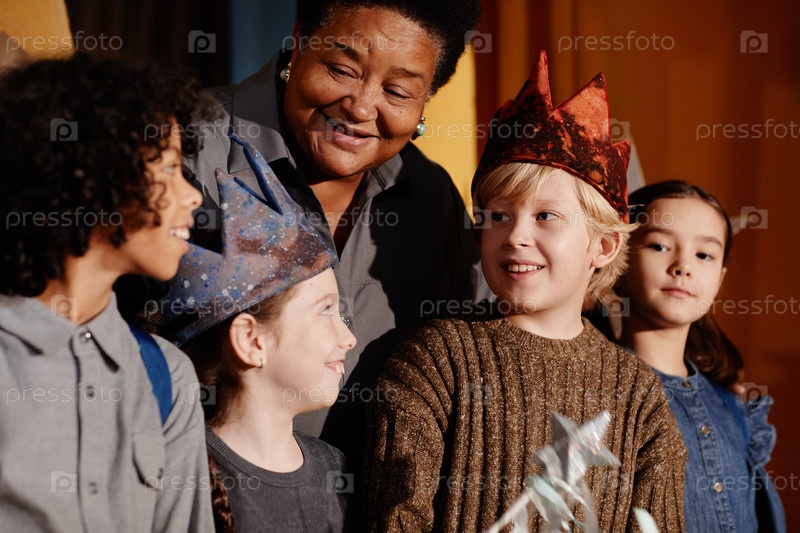 Группа разнообразных детей, улыбающихся и празднующих вместе