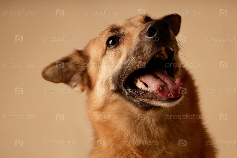 Взволнованная собака демонстрирует выражение лица