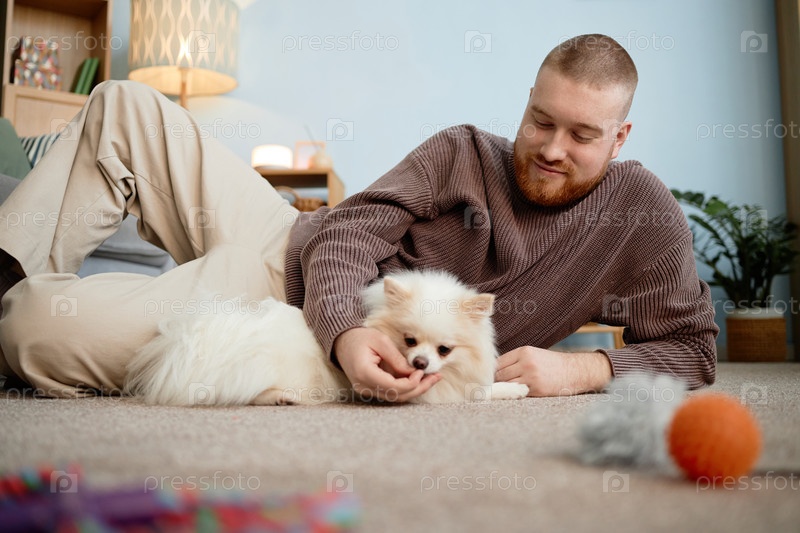 Наслаждайтесь качественным временем с пушистой белой собакой в помещении, отдыхая
