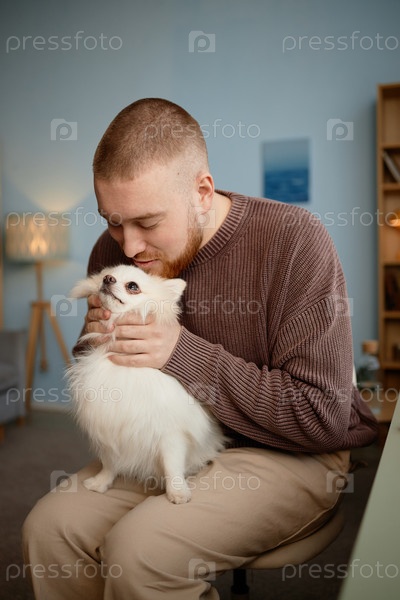 Хранение маленькой белой собаки внутри уютной гостиной