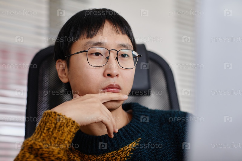 Портрет мужчины, носящего очки и размышляющего вдумчиво