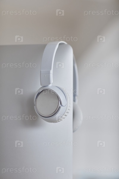 Белые надушные наушники на минималистическом фоне
