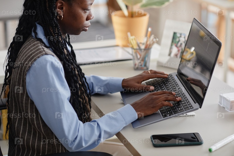 Женщина, работающая на ноутбуке в современном офисе