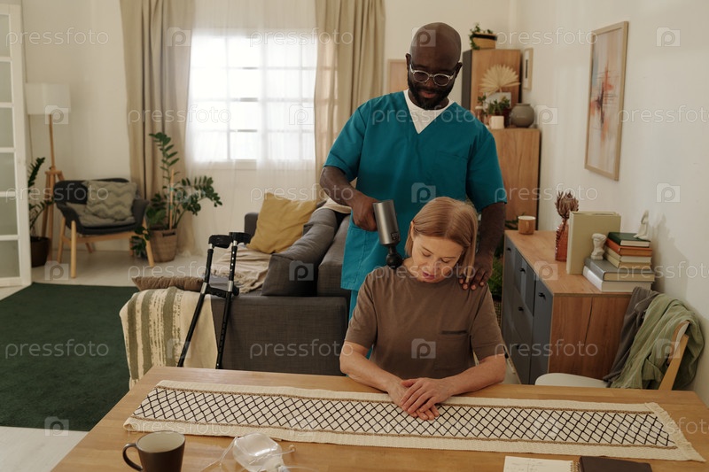 Американский опекун, помогающий пожилой женщине-африканке дома