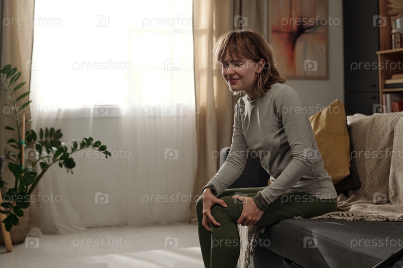 Женщина, растягивающаяся в помещении возле окна и дивана