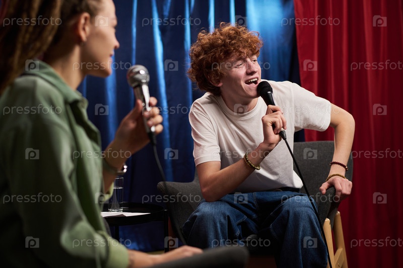 Смеющиеся исполнители во время стенд-ап комедийного шоу