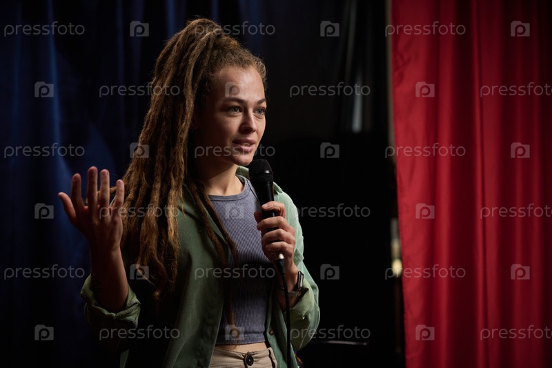 Афроамериканская женщина доставляет захватывающую стендап-комедию