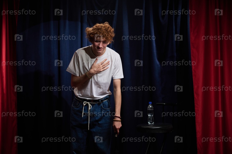 Исполнение стенд-ап комедии на сцене в центре внимания
