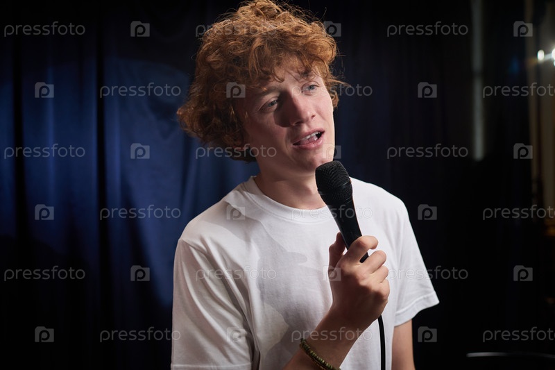 Певческое исполнение во время концерта с микрофоном