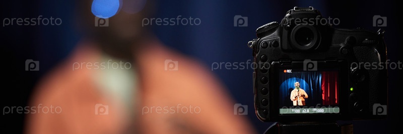 Запись спикера на сцене с профессиональной камерой
