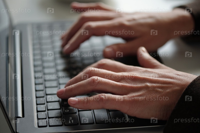 Женские руки, печатающие на клавиатуре ноутбука Работают