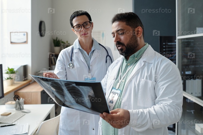 Ближневосточный врач, держащий грудную клетку рентгеновским луком