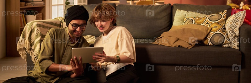 Взаимодействие с планшетом в уютной среде гостиной