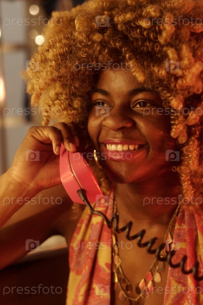 Улыбающаяся женщина участвует в телефонном разговоре