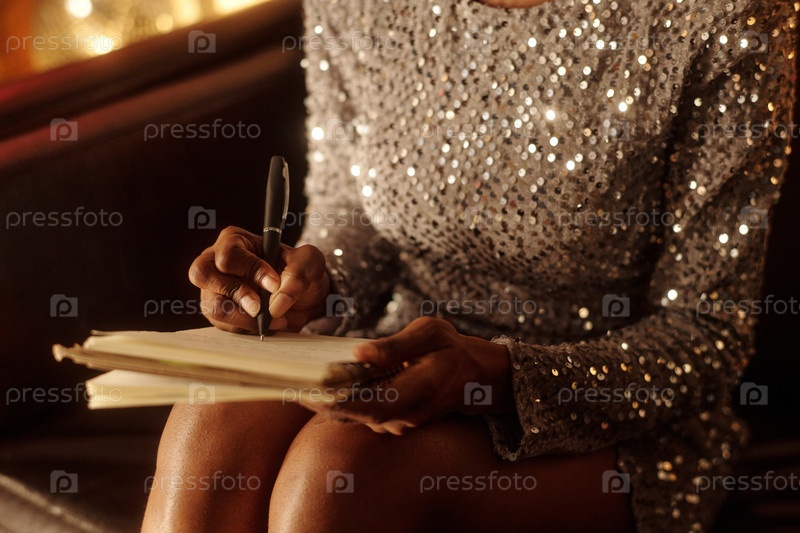 Женщина, пишущая в блокноте с платьем из полотенца ночью