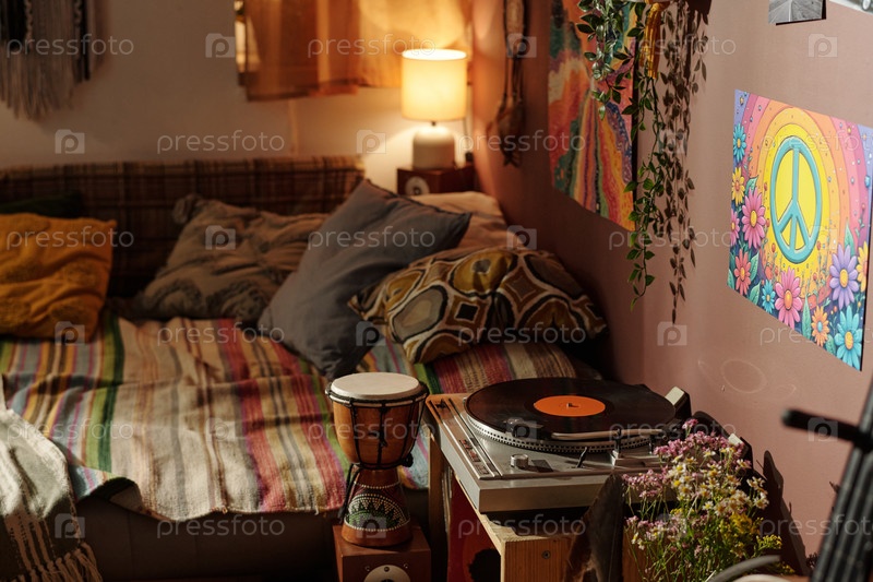 Празднование богемного дизайна интерьера с Vinyl Records