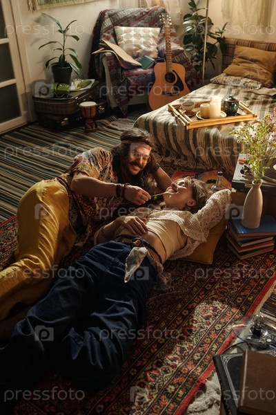 Обмен нежным моментом в уютной богемной комнате