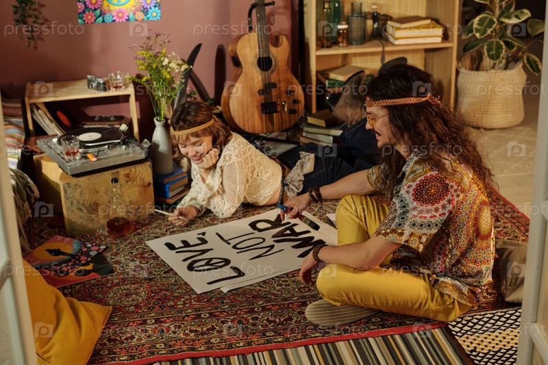 Изготовление мирного плаката в комнате ретро-стиля