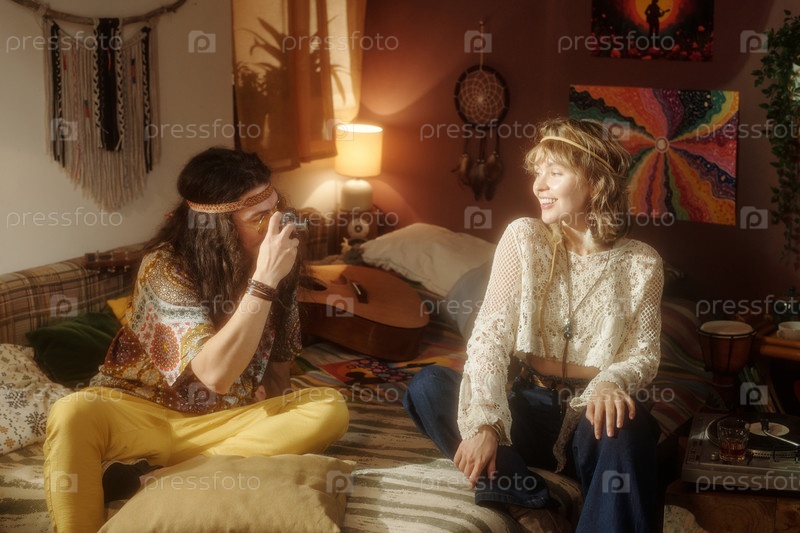 Друзья, которые вместе наслаждаются комнатой в богемном стиле